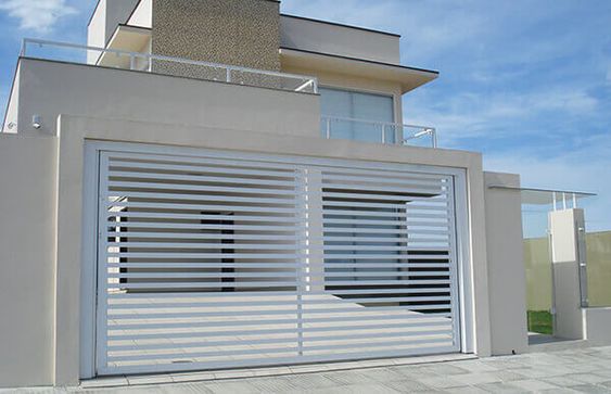 Portões basculantes: Levantam-se verticalmente com auxílio de contrapesos, ideal para garagens com pé direito alto.