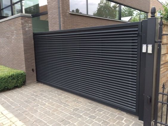 Portões de correr: Deslizam lateralmente sobre trilhos, ideal para espaços reduzidos. Podem ter 2, 3 ou 4 folhas.